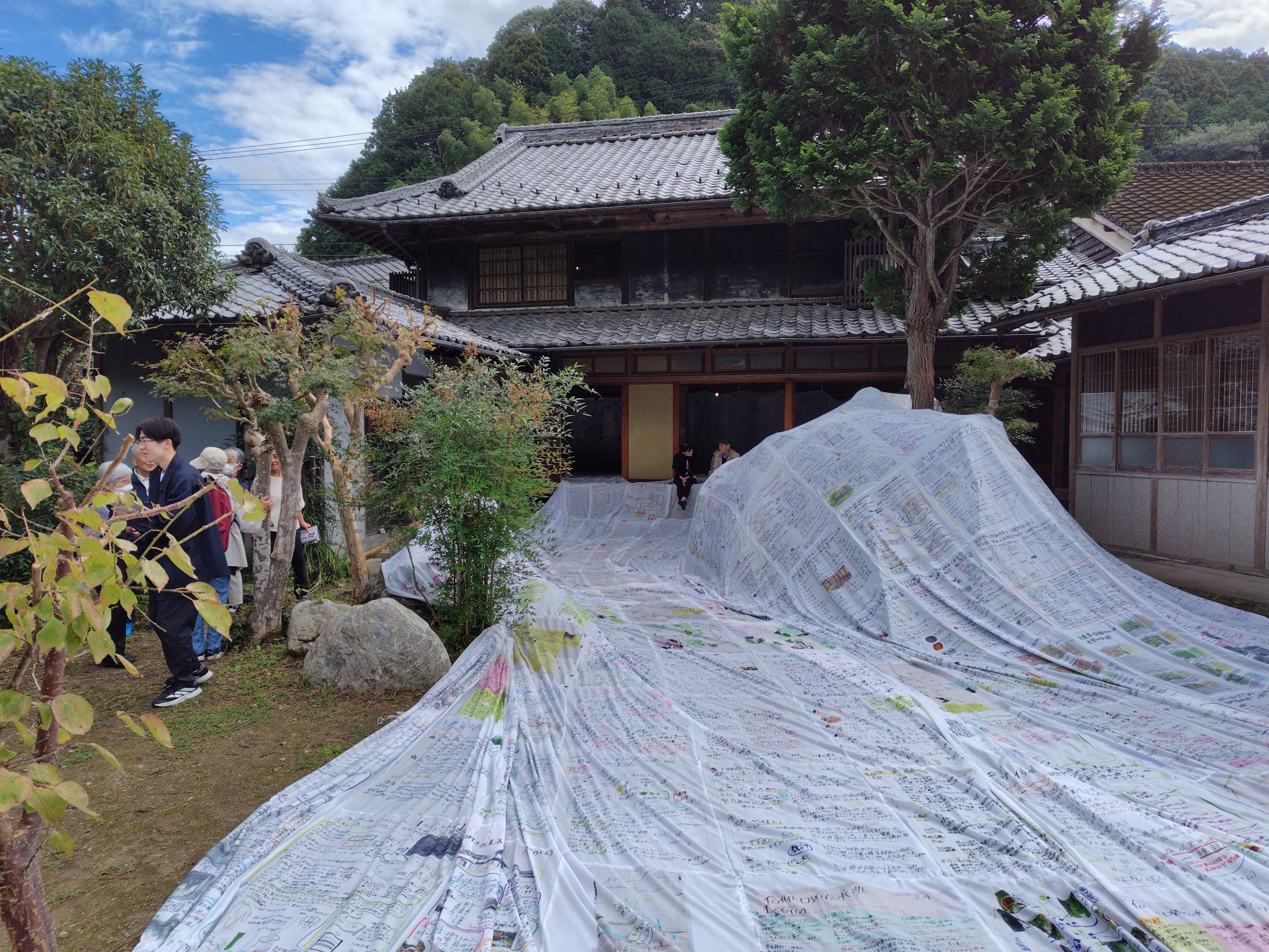 展示されているのは、1 枚の大きな布。愛媛大学井口ゼミの井口梓教授とその学生が、小田に住んでいる方から
