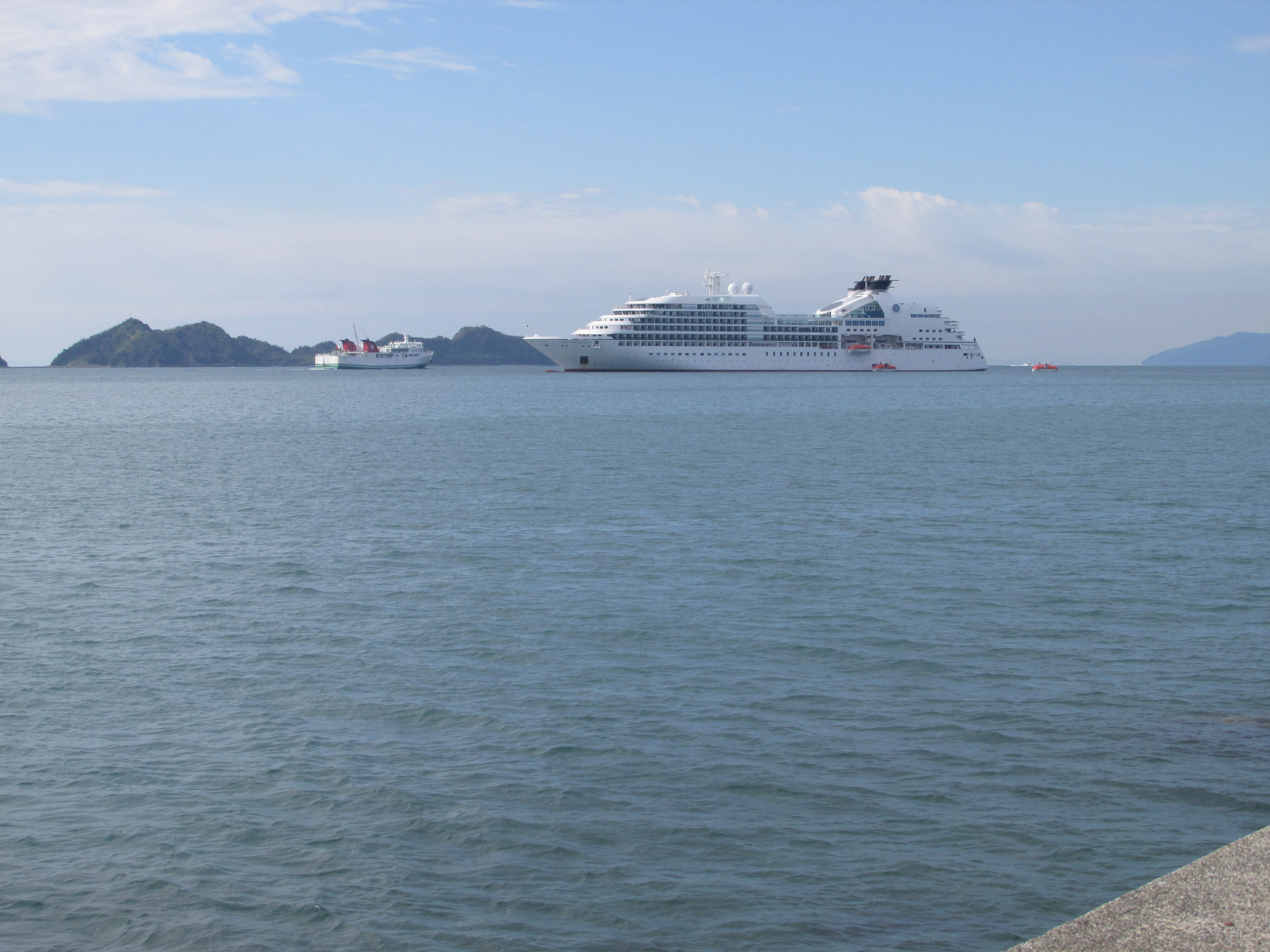 ついに八幡浜にクルーズ船が来るというので見に行ってきました(子どもかよっ)。近隣の大洲市、宇和島市には